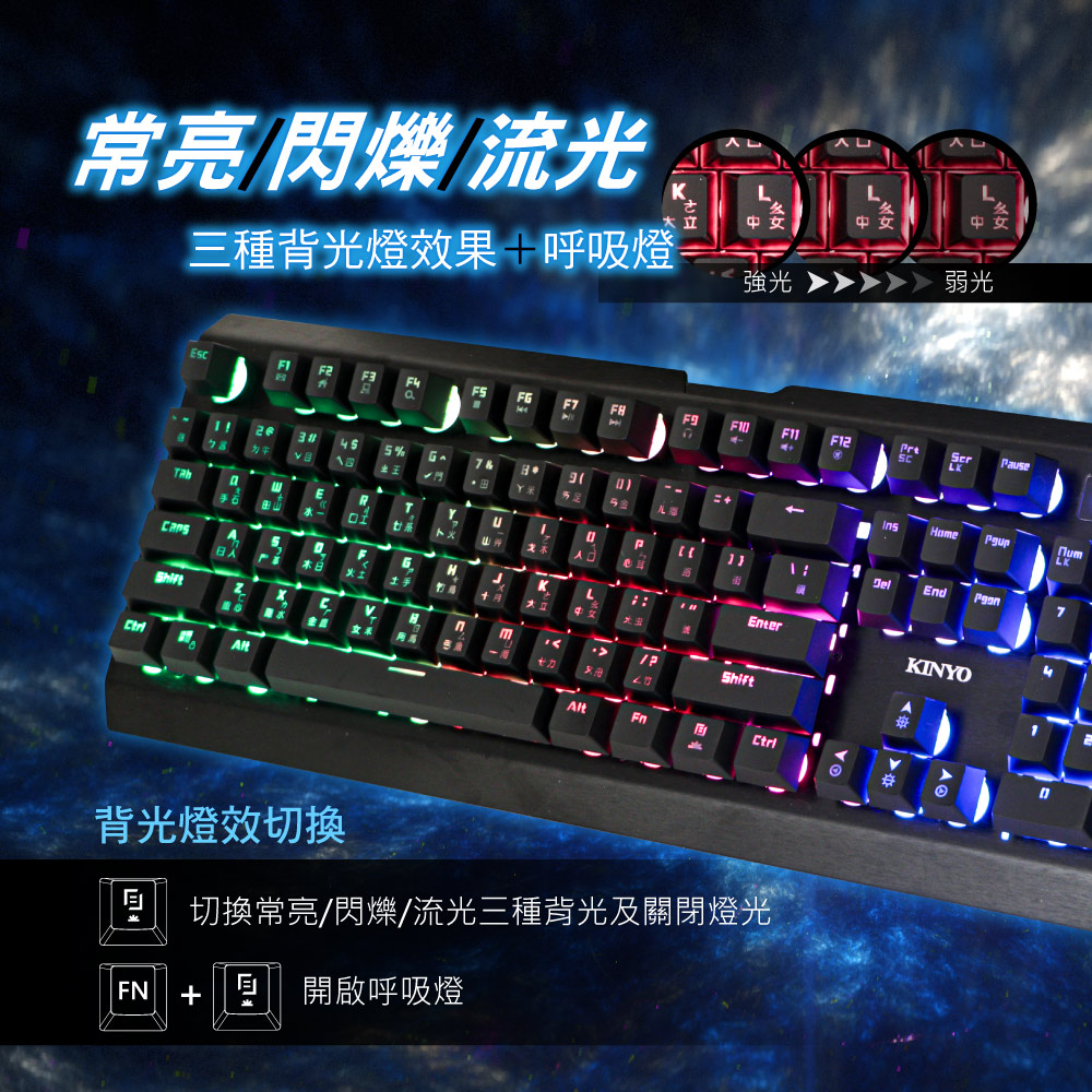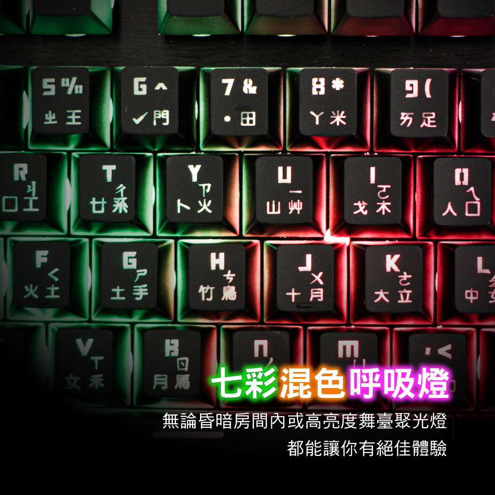 .七彩混色呼吸燈,明亮度可在鍵盤的組合鍵做調整。無論在昏暗的房間內或高亮度的舞臺聚光燈等下,都能讓你有更舒適的體驗。