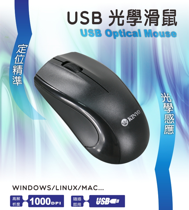 額定電壓:DC 5V 介面:USB 解析度:1000DPI 系統需求:Win 8.1、8 / 7 / VISTA / XP Mac OS x10.5或更新版本 Linux kernel 2.6或更新版本 按鍵數:3鍵(含滾輪) 材質:塑膠 線長:1.5m±3% 重量:55g 產品尺寸: (W)66x(H)41x(D)106mm