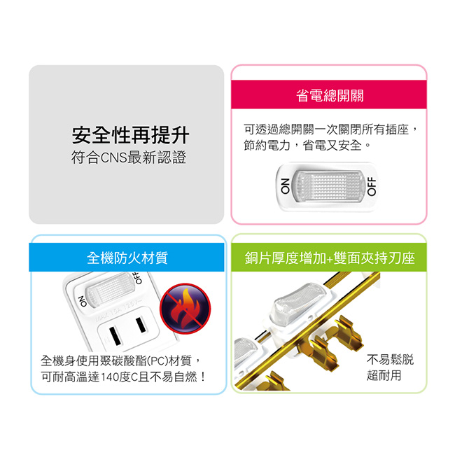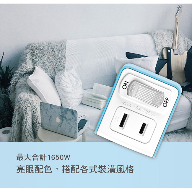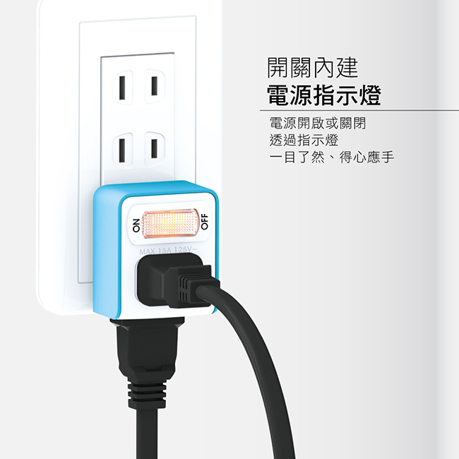額定規格:MAX 15A 適用電壓:110V AC /60Hz 最大合計:MAX 1650W 主要成份:銅、聚碳酸酯(PC) 保存期限:10年(未拆封常態下) 產品尺寸: W40xH50.8xD47.3 mm 產品重量: 41 g 包裝尺寸: W75xH50.8xD150 mm 包裝重量: 48 g