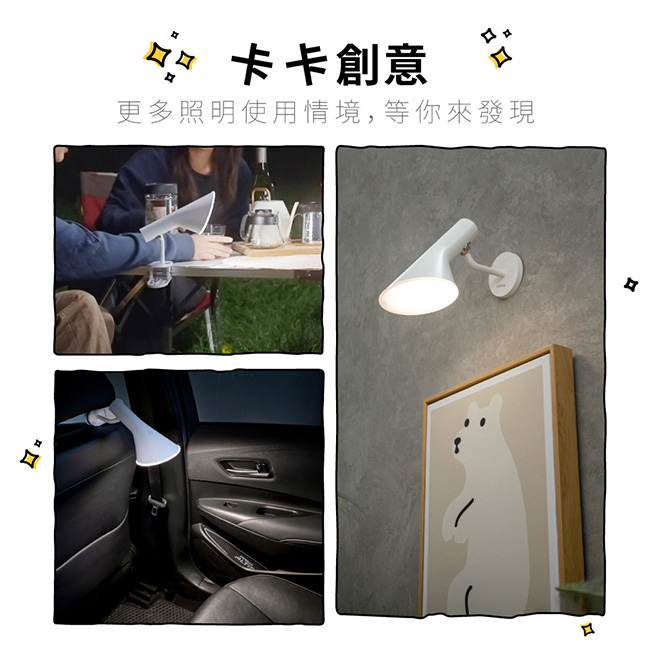 產品內容:廣角燈頭x1、壁貼支架x1、夾燈座x1、Type-C電源線x1
