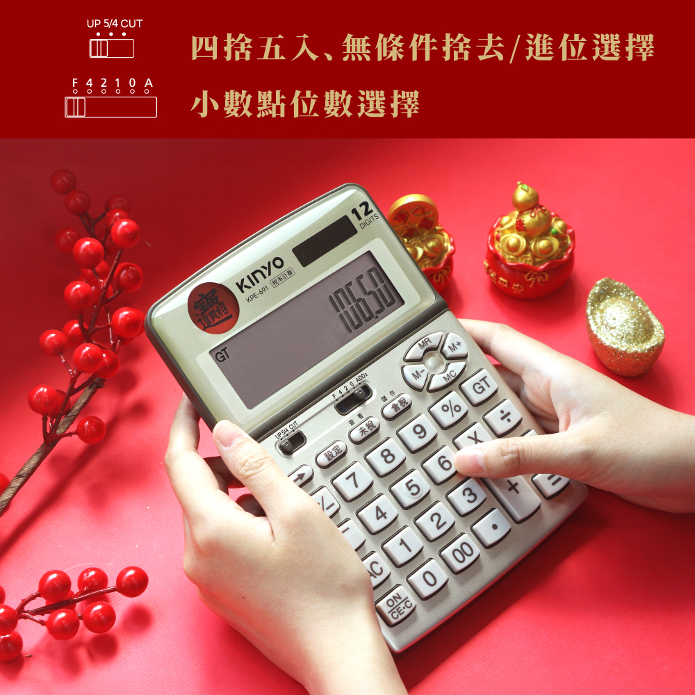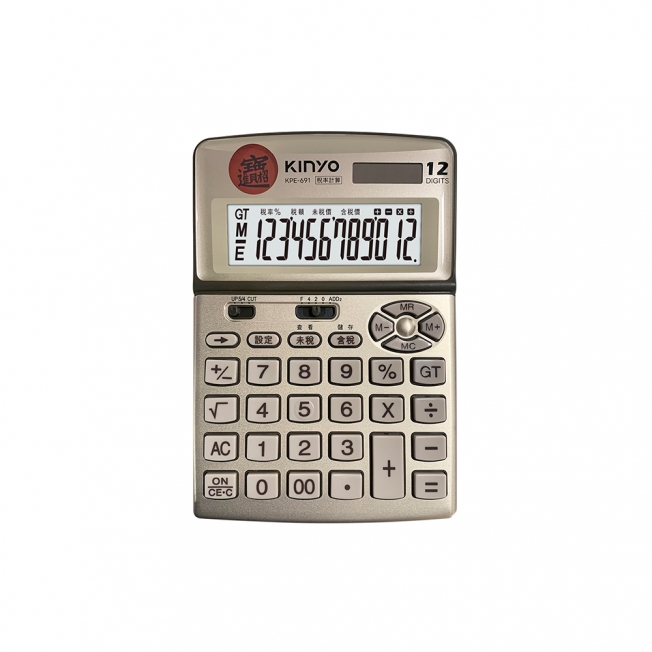 品名:計算機 型號:KPE-691 位元:12位元 使用電源:太陽能/AG-13鈕扣電池x1 產品材質:ABS塑膠、輔金屬 產品重量:226g 產品尺寸:W189xD130xH37mm 包裝尺寸:W172xD257xH40mm 按鍵數:31鍵