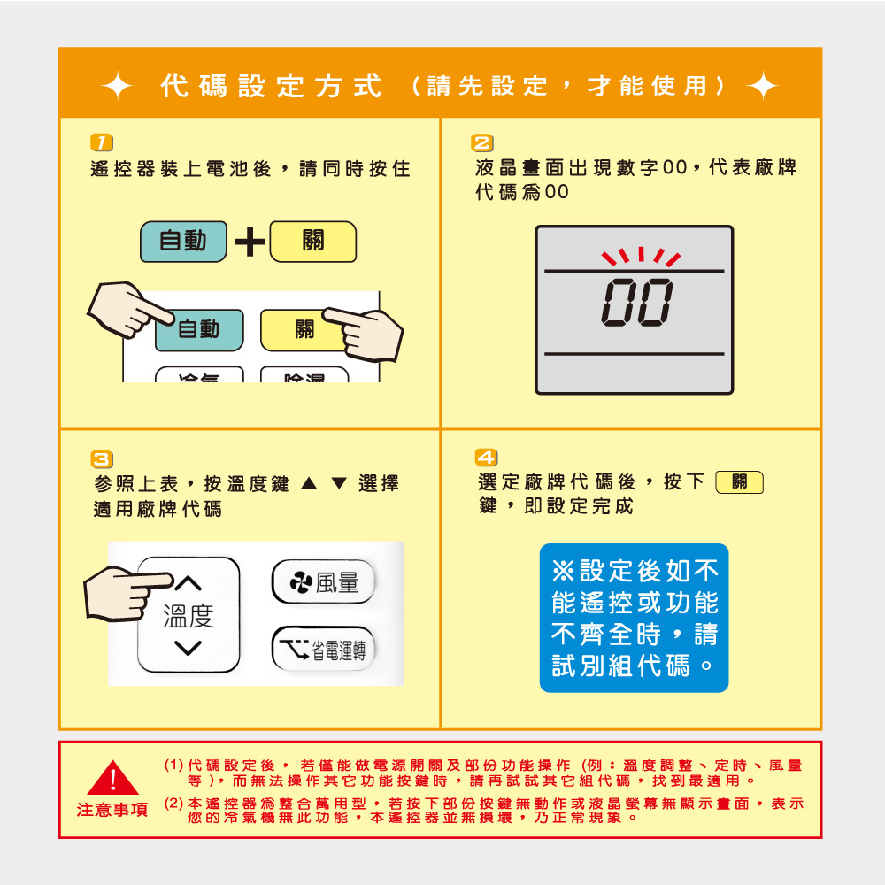 訊號傳送:紅外線發光方式 使用電源: DC 3V(4號AAA電池x2)(另購) 遙控距離 :約8m(無任何障礙環境) 遙控類別 :冷氣機 製造號碼/製造日期: 如本體標籤所示 產品尺寸 :W48xH180xD24mm 產品重量 :82g(不含電池)