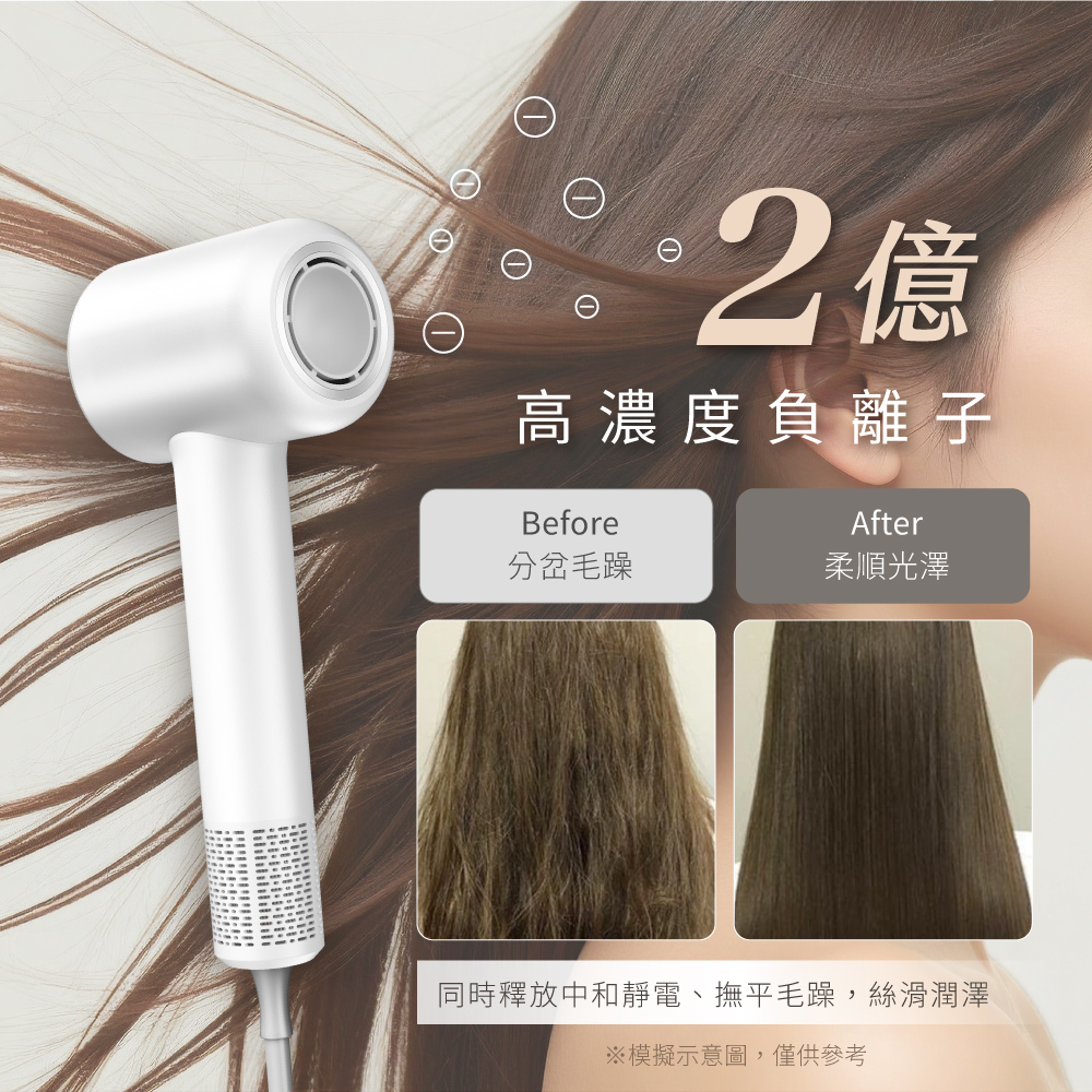 · 2億高濃度負離子,遠離毛躁,絲滑潤澤。