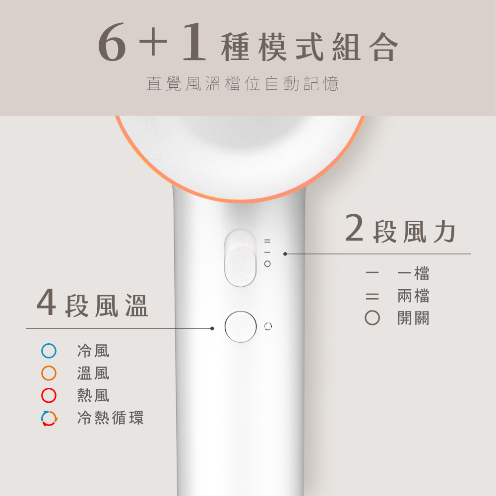 · 3段風溫×2段風力自動記憶,速乾、造型一次完成。