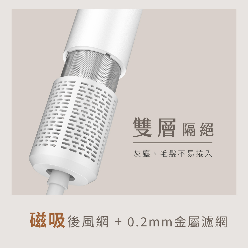 · 磁吸後風網+0.2mm金屬濾網,灰塵及頭髮不易吸入。