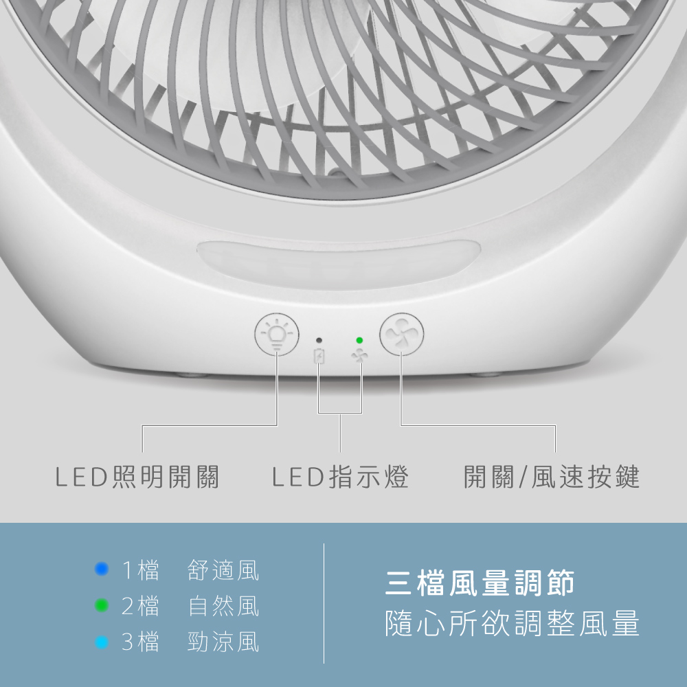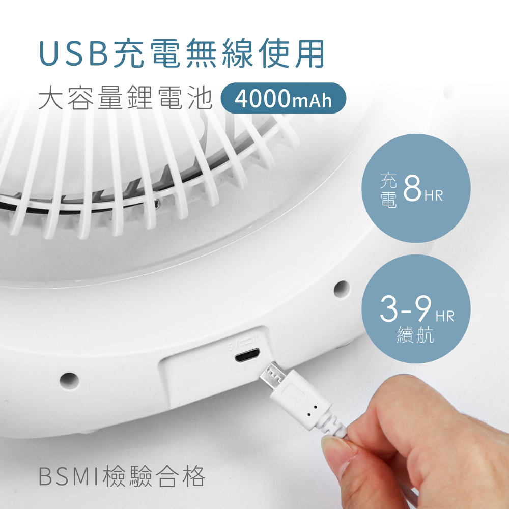 品名:充電風扇 型號:UF-8733 額定充電電壓:5Vdc⎓ 額定充電電流:2A 電池規格:內建18650鋰電池4000mAh 充電時間:約8小時 使用時間:3~9小時 充電指示燈:充電時紅燈恆亮 充飽時綠燈恆亮 風扇吋數:7吋 材質:ABS塑料 產品尺寸:W245xH302xD100mm 包裝尺寸:W255xH307xD106mm 產品重量:645g 配件:USB充電線x1