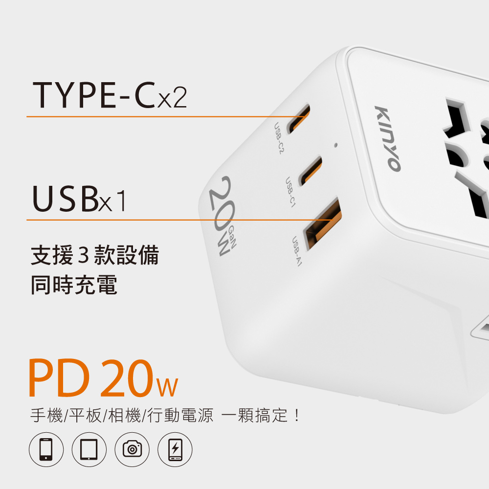 額定電壓:AC 100-250V 額定電流:50-60Hz 總功率:Max 2500W USB輸出規格: USB-C1/C2 Output : 5V⎓3A/9V⎓2.22A/12V⎓1.67A,20W USB-A Output : 5V⎓3A/9V⎓2A/12V⎓1.5A,18W Total DC Output : 20W 保險絲規格:10A (備用10A) 材質:PC塑膠、純銅 產品尺寸: W56xH55xD63 mm 產品重量: 135 g 包裝尺寸: W85xH148xD58 mm