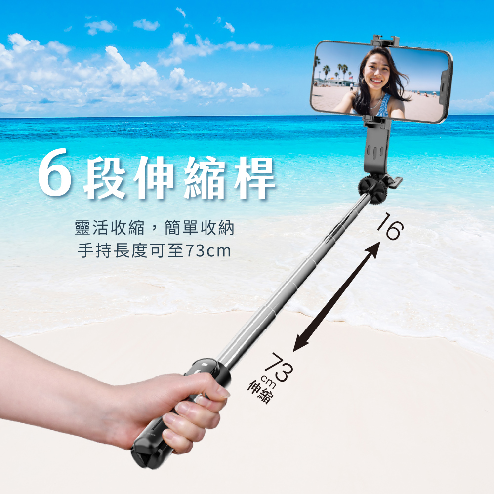 額定電壓:3V 額定頻率:60Hz 電池規格:CR1620 (內附) 電池容量:70mAh 材質:ABS塑膠、金屬 產品重量:169g±10% 伸縮尺寸:16-73cm 產品尺寸:W35xH160xD52mm 包裝尺寸:W63xH189xD58mm 配件:遙控器x1、磁吸片x1