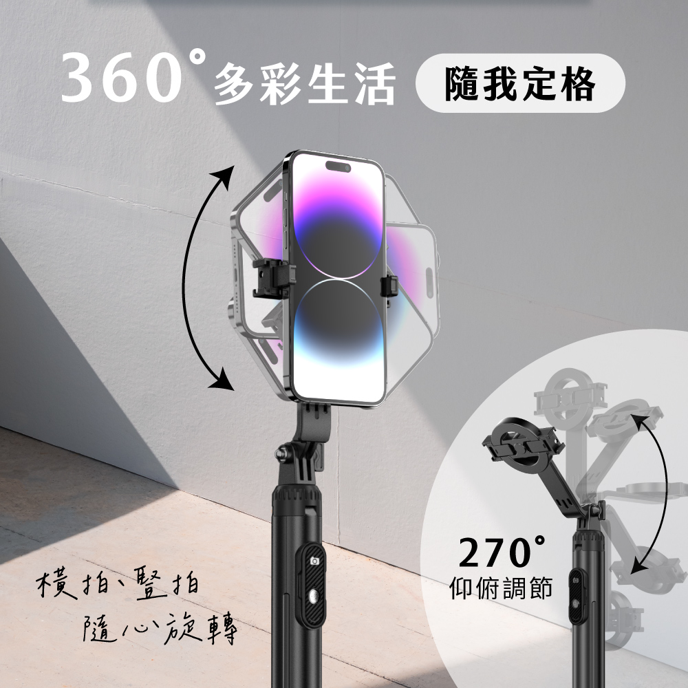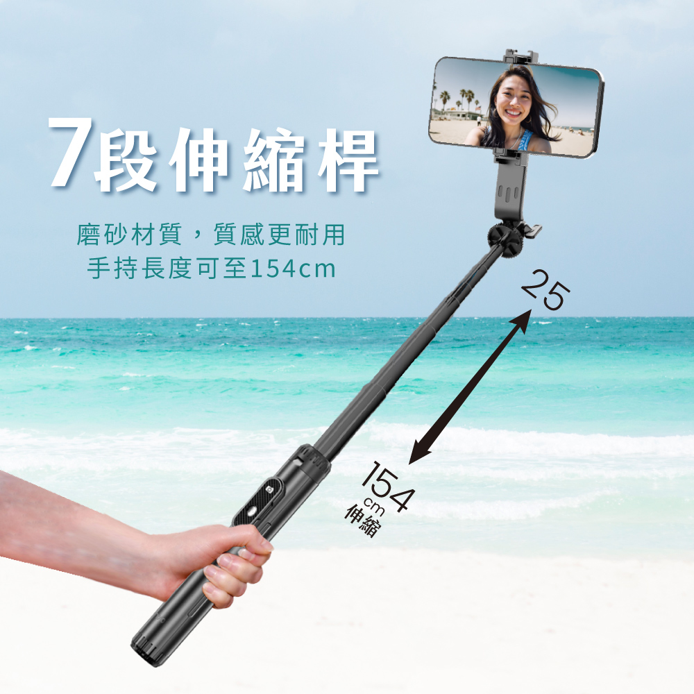 額定電壓:4.2V 電池規格:401020 電池容量:55mAh 材質:ABS塑膠、金屬 產品重量:266g±10% 伸縮尺寸:25-154cm 產品尺寸:W54xH250xD64mm 包裝尺寸:W71xH291xD59mm 配件:遙控器x1、磁吸片x1