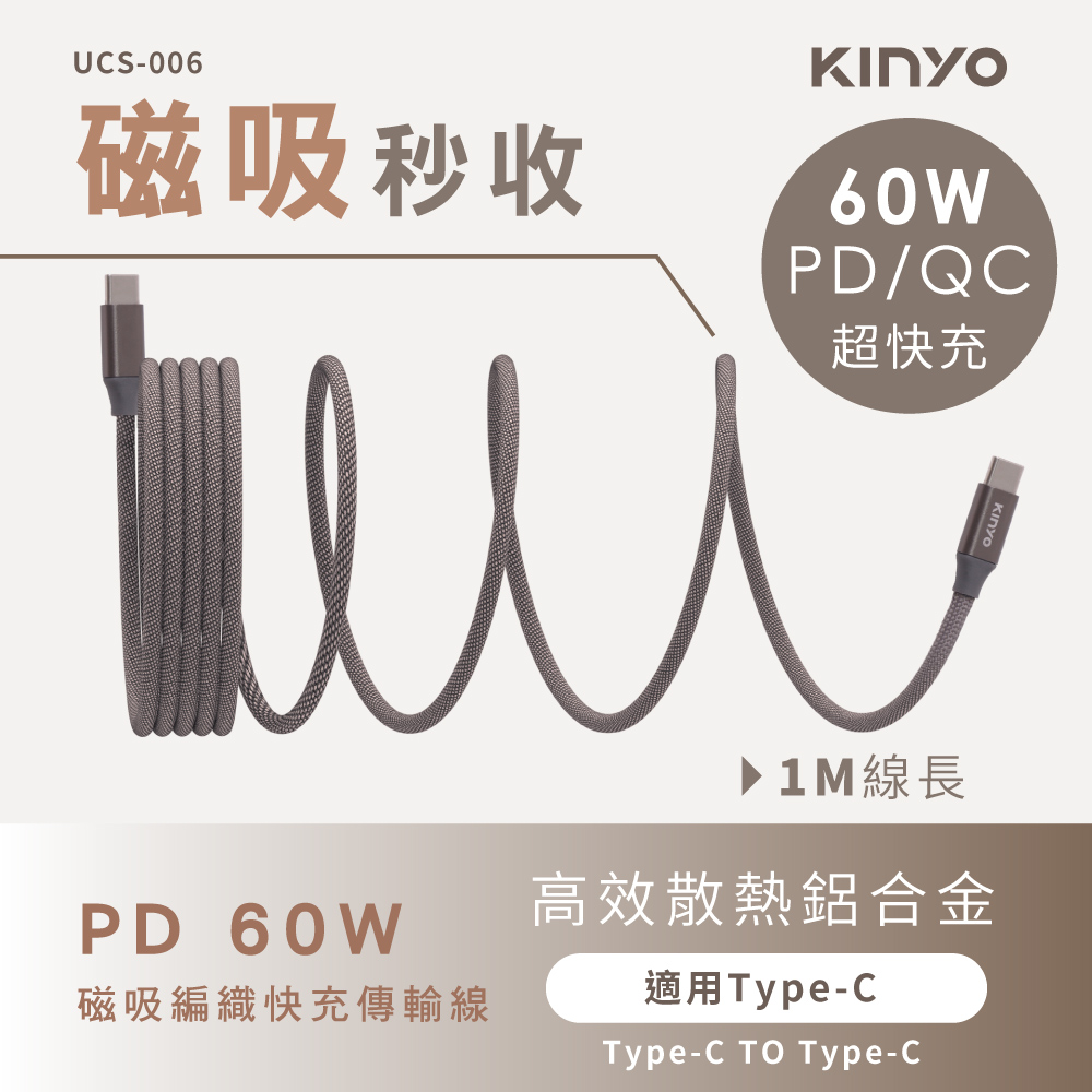 Type-C TO Type-C PD 60W磁吸秒收快充傳輸線