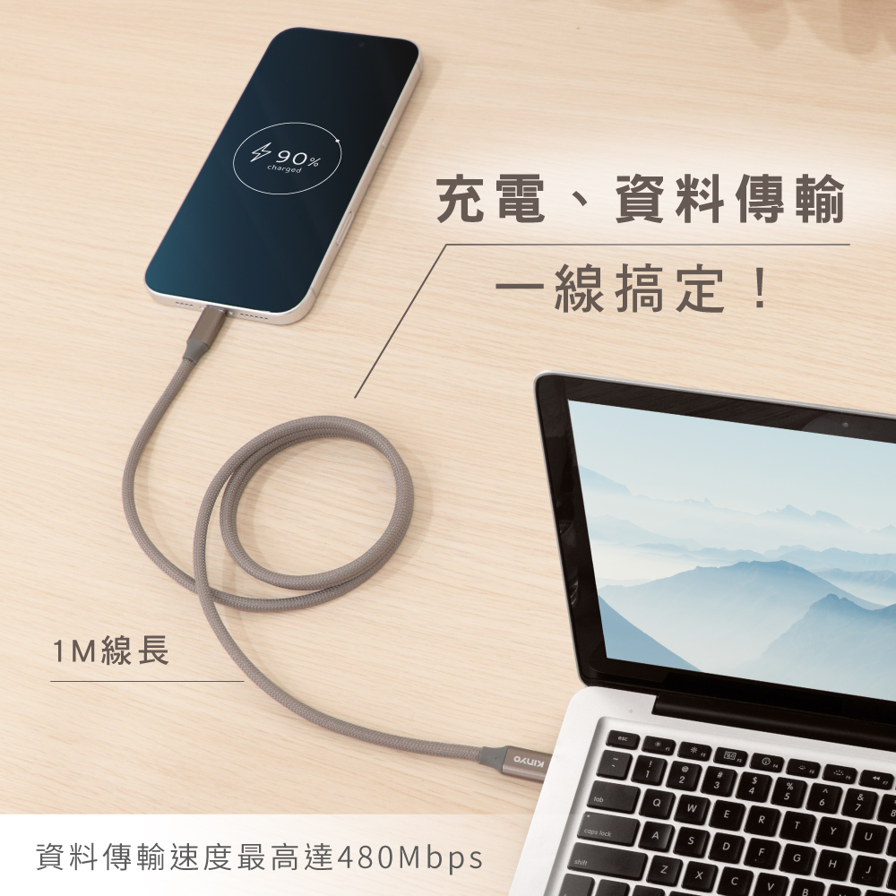 充電、資料傳輸一線搞定!資料傳輸速度最高達480Mbps。