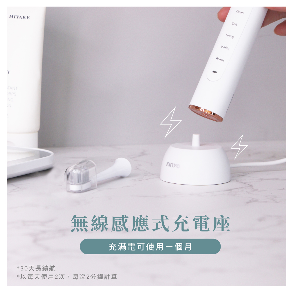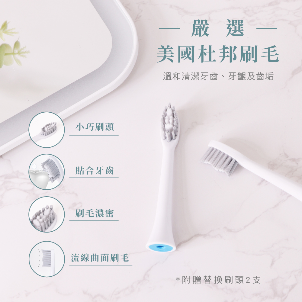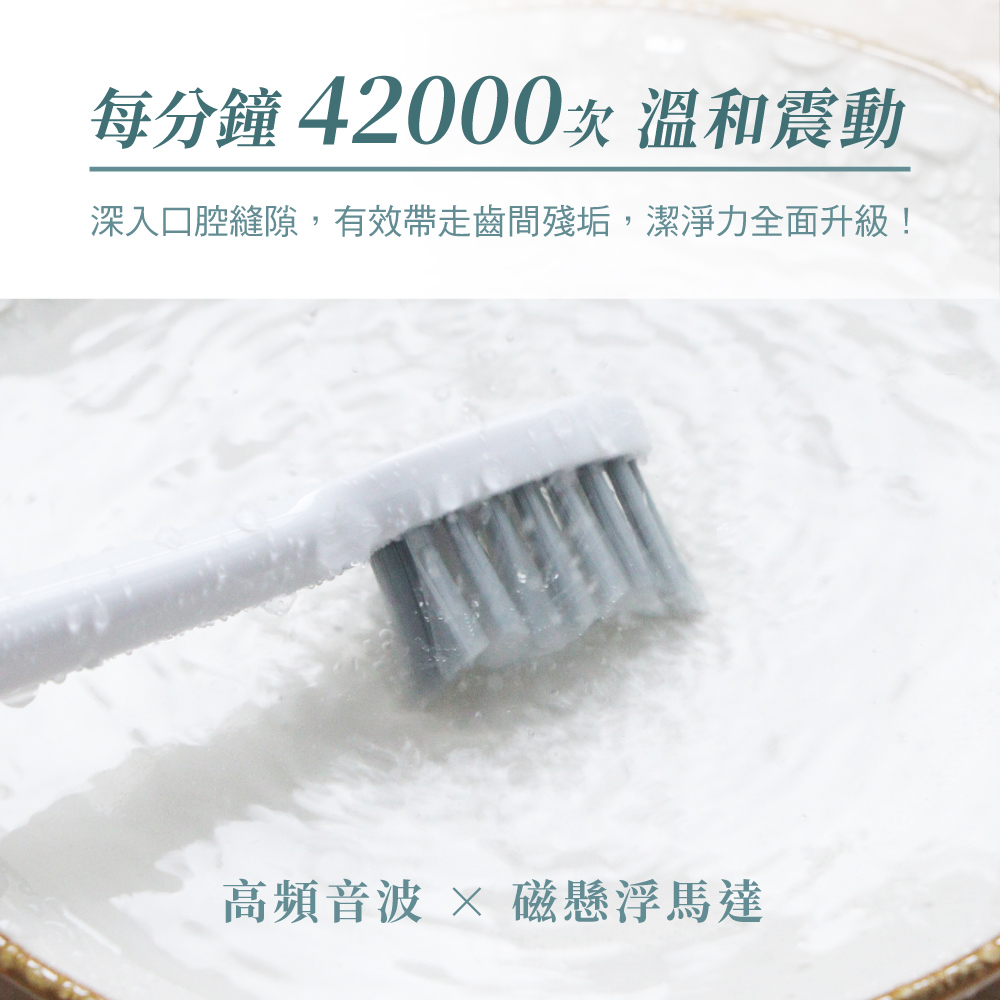 額定電壓:DC 5V 消耗功率:2W 震動頻率:42000次/分±2000次 使用電源:DC 5V 1A 電池規格/容量:內建鋰電池800mAh 充電時間:約12-16小時 使用時間:約30天(以每天2次/每次2分鐘計算) 材質:ABS塑膠+尼龍刷毛 產品重量:100g(含刷頭) 產品尺寸:248×29×30mm(含刷頭) 58×58×28mm(充電底座) 包裝尺寸:W160XH258XD55mm 配件:本體×1、刷頭×2 充電座×1、收納盒×1