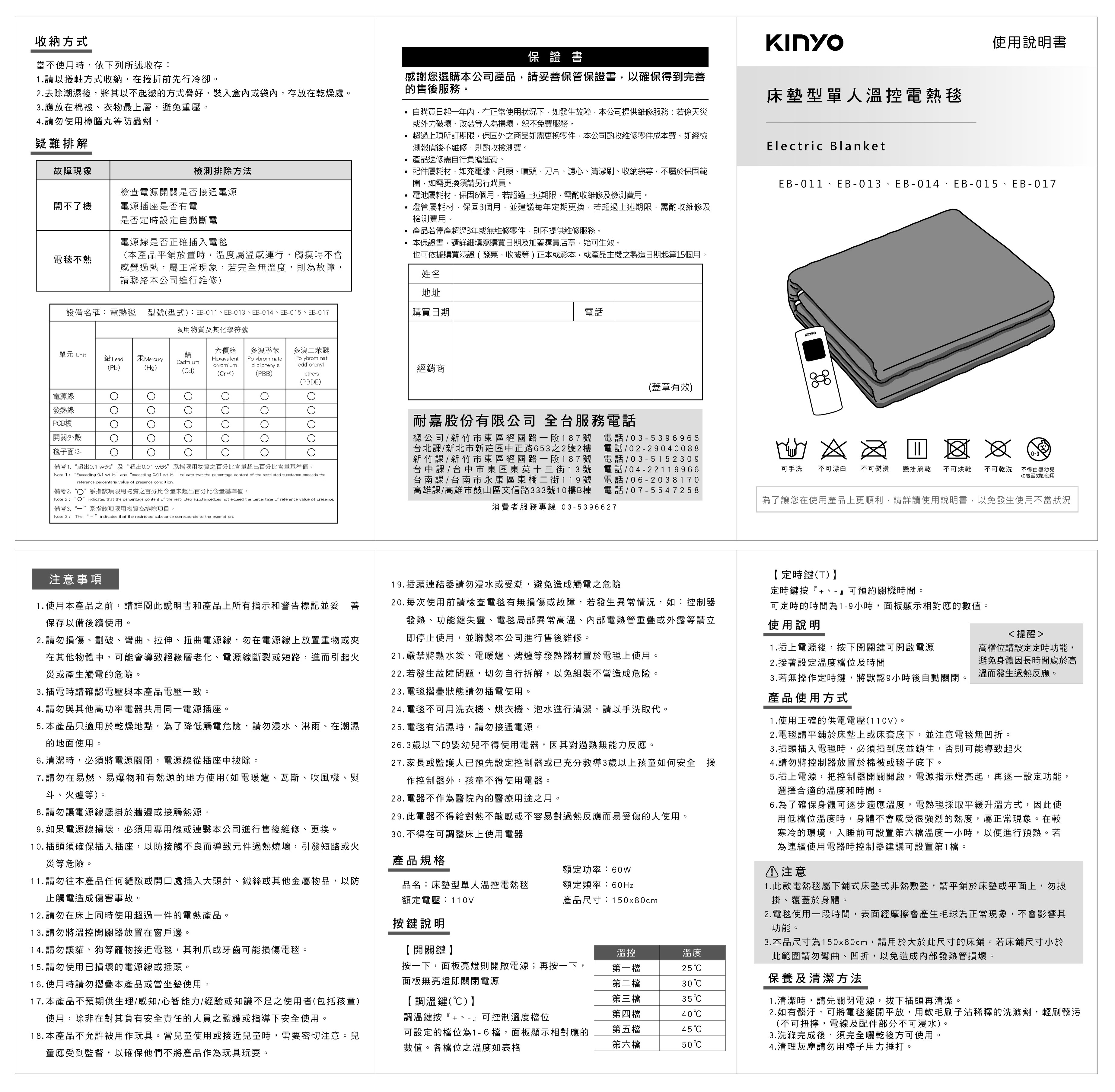 額定電壓:110V 額定頻率:60Hz 總額定消耗電功率:60W 材質:聚酯纖維、電熱元件 布料材質:珊瑚絨 配件:電源控制器 產品尺寸: W150xHxD80 mm 產品重量: 1.2kg±300g 包裝尺寸: W410xH300xD100 mm