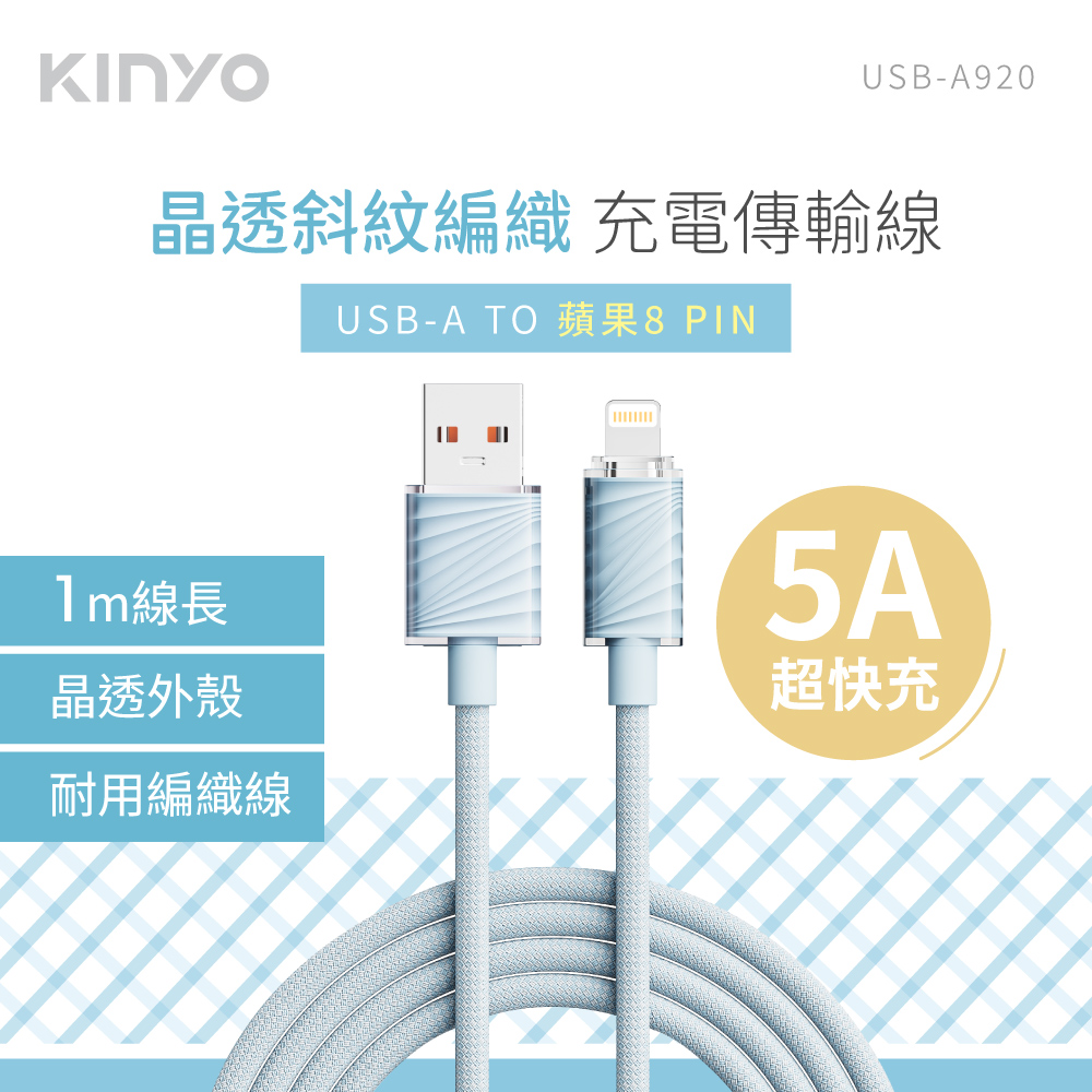 USB-A TO 蘋果8 PIN 晶透斜紋編織充電傳輸線