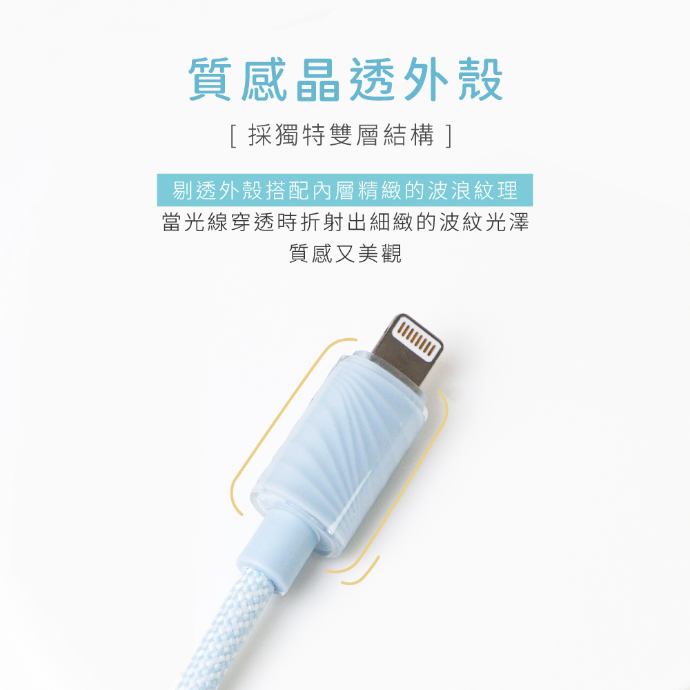 產品名稱:USB-A TO 蘋果8 PIN 晶透斜紋編織充電傳輸線