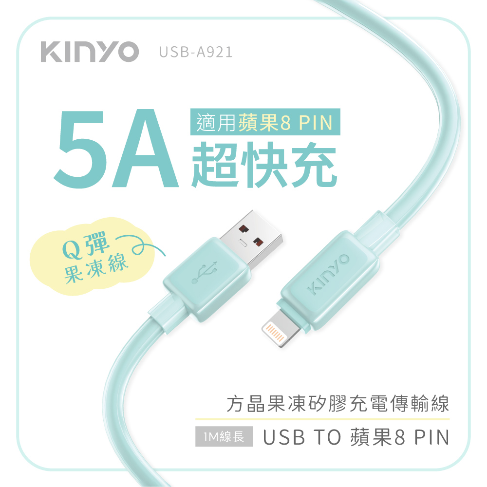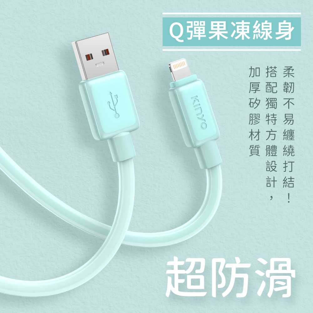 USB-A TO 蘋果8 PIN方晶果凍矽膠充電傳輸線
