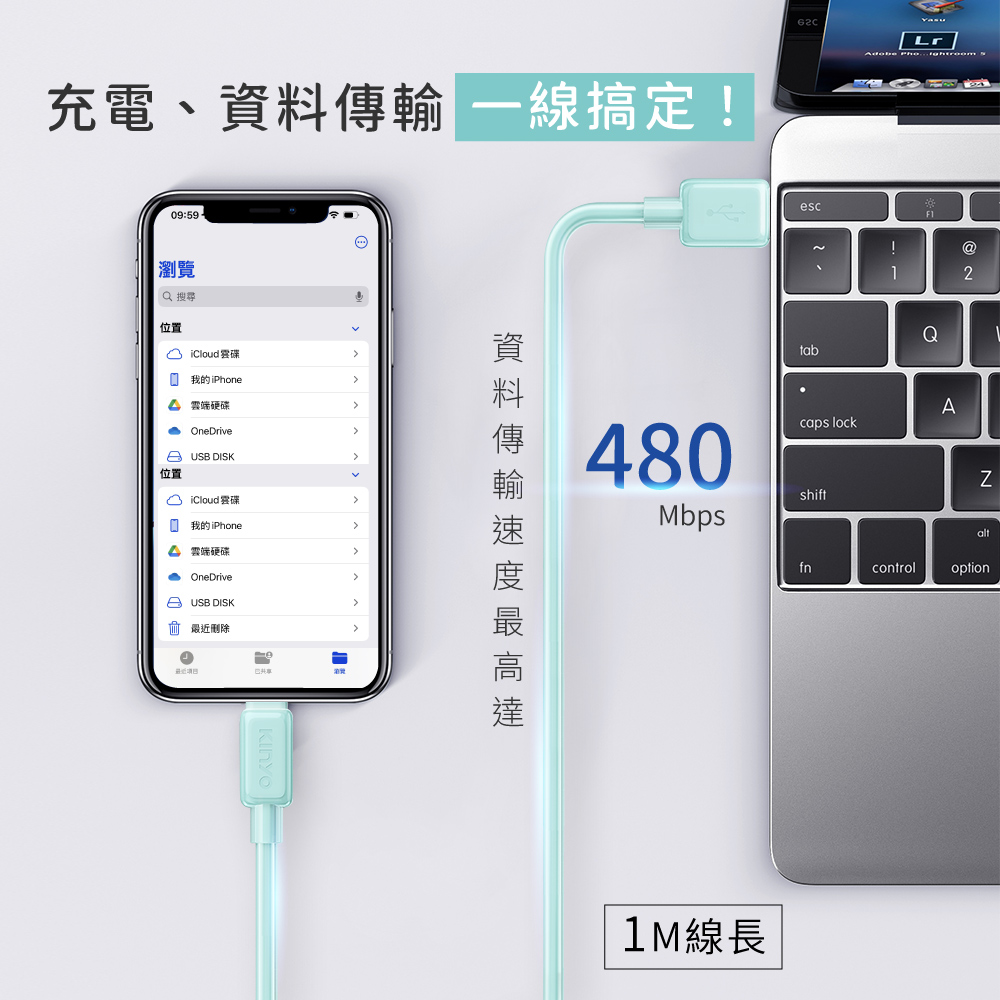 ・充電、資料傳輸一線搞定!資料傳輸速度最高達480Mbps