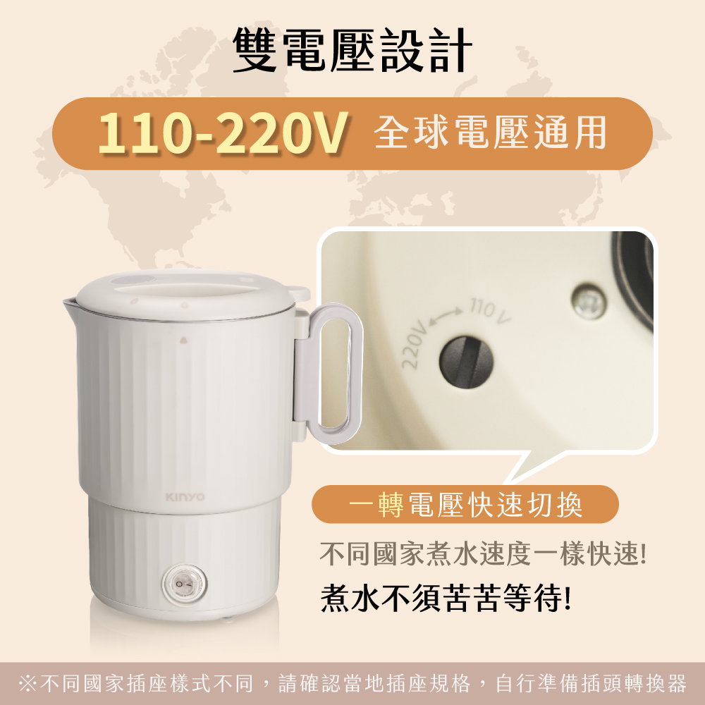 品 名|雙電壓快煮壺 型 號|AS-HP95 額 定 電 壓|110V-220V 總額定消耗電功率|600W 材 質|304不鏽鋼、PP塑膠 額 定 容 量|0.8L(Max水位線) 產 品 重 量|860g±10%(含電源線) 產 品 尺 寸|收納後W130×D148×H158mm / 組裝後W130×D180×H198mm 電 源 線 長|75cm 包 裝 尺 寸|W185×D140×H165mm 配 件|分離式電源底座 商 品 原 產 地|中國(HF)
