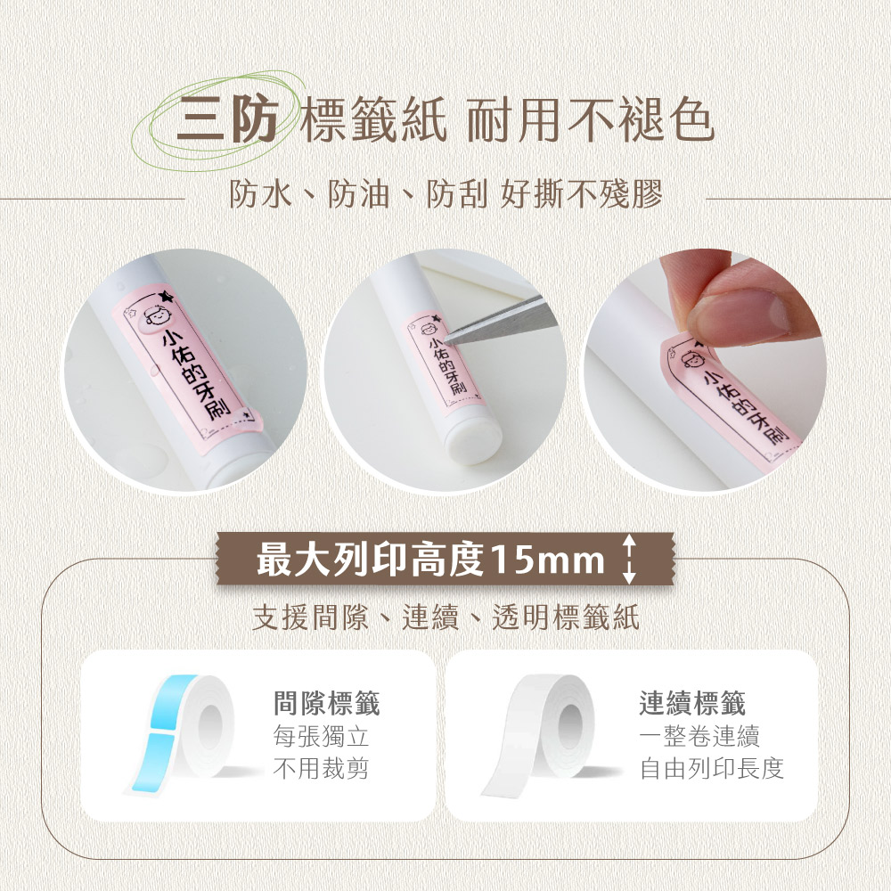 額定輸入:3.7V 電池容量:1000mAh 充電規格:5V⎓1A 續航時間:約75分鐘 印刷方式:熱敏感應 材質:ABS塑膠 列印尺寸:Max12mm 列印速度:20mm/s 列印解析度:203dpi 最高操作溫度:35℃ 充電保護溫度:(上限)45℃±5℃、(下限)0℃±5℃ 適用紙捲高度:Max15mm(間隙/連續) 配件:USB To Type-C充電線 產品尺寸: W110xH64xD47 mm 產品重量: 148 g 包裝尺寸: W115xH82xD50 mm