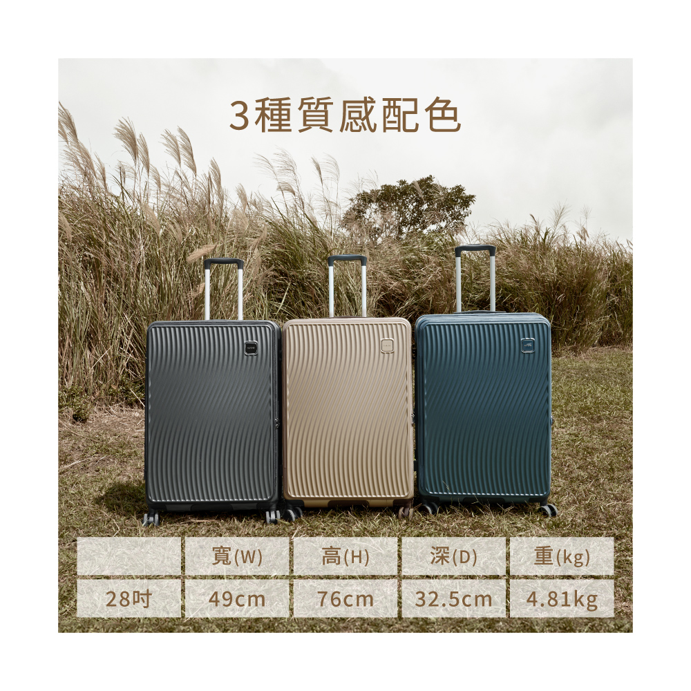 品名:行李箱 型號:KLG-2810 主要材質:ABS+PC塑膠 裝載重量:16kg 產品重量:4.81kg 產品尺寸:W490xH760xD325 mm 包裝尺寸:W500xH770xD335 mm 產地:中國(EM)
