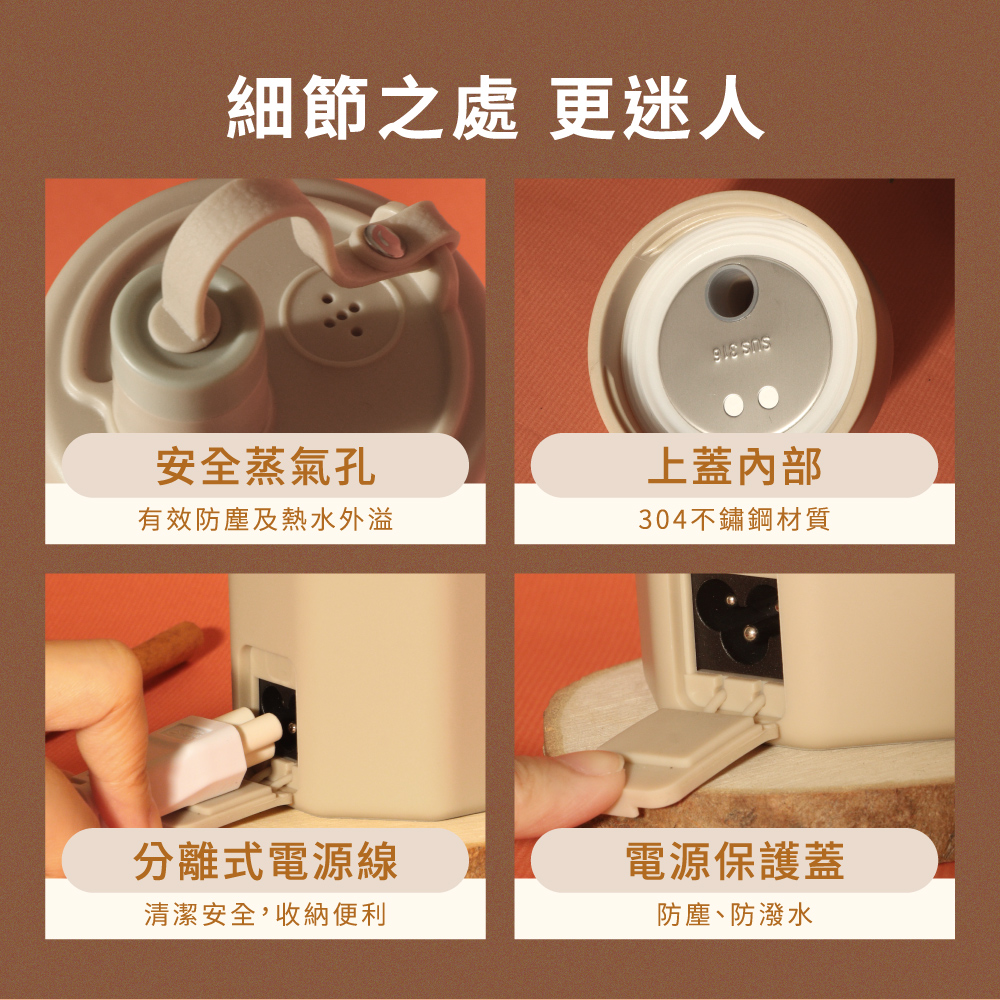 品名:智慧溫控寬電壓快煮杯 型號:KIHP-2720 額定電壓:100V-240V 額定頻率:60Hz 總額消耗電功率:300W 材質:304不鏽鋼、PP塑膠 產品重量:主機463g±10% 產品尺寸:W70xD84xH255mm 產品容量:465mL(Max水位線365mL) 電源線長:65cm±10% 包裝尺寸:W105xD105xH250mm 產品配件:電源線 產地:中國(BA)