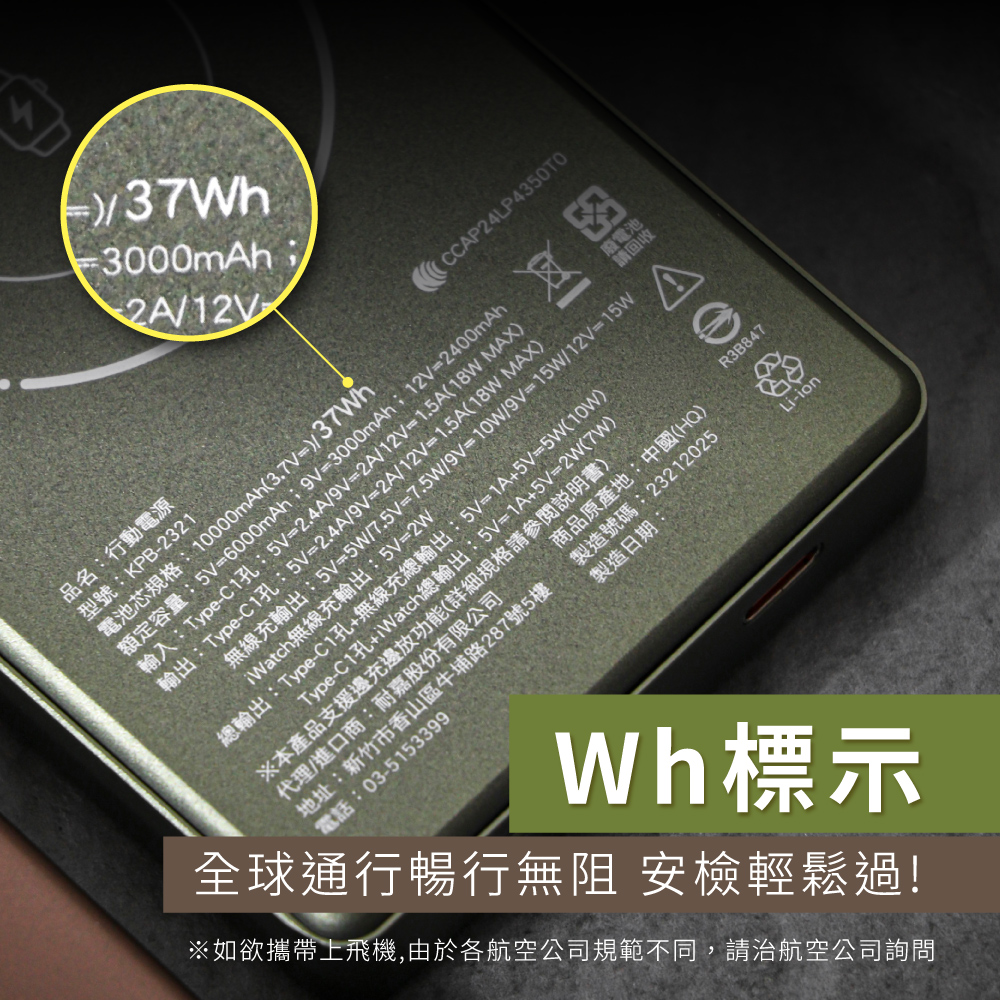 電池芯規格:10000mAh(3.7V⎓) / 37Wh