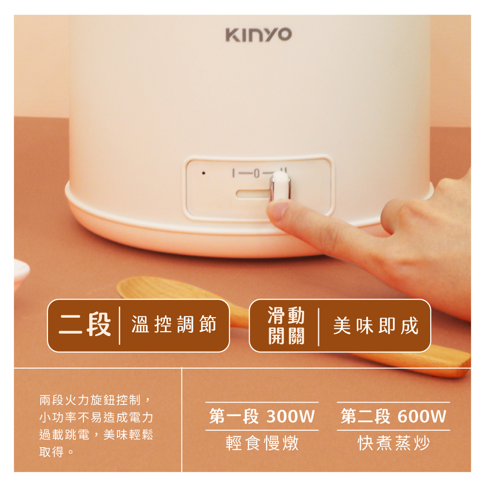 額定電壓:110 V 額定頻率:60Hz 總額定消耗電功率:第一檔300W,第二檔600W 材質:陶瓷不沾塗層、塑膠、304不鏽鋼 額定容量:2L(Max水位線1.8L) 產品重量:870g±10%(含電源線) 產品尺寸:w220xD205xH242mm 包裝尺寸:W205XD195XH175mm 配件:鍋蓋、電源線