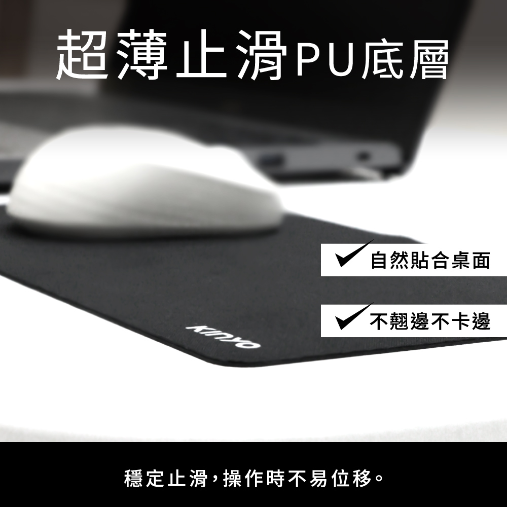 緊密貼合桌面不卡邊,天然止滑性讓滑鼠墊穩固不位移。