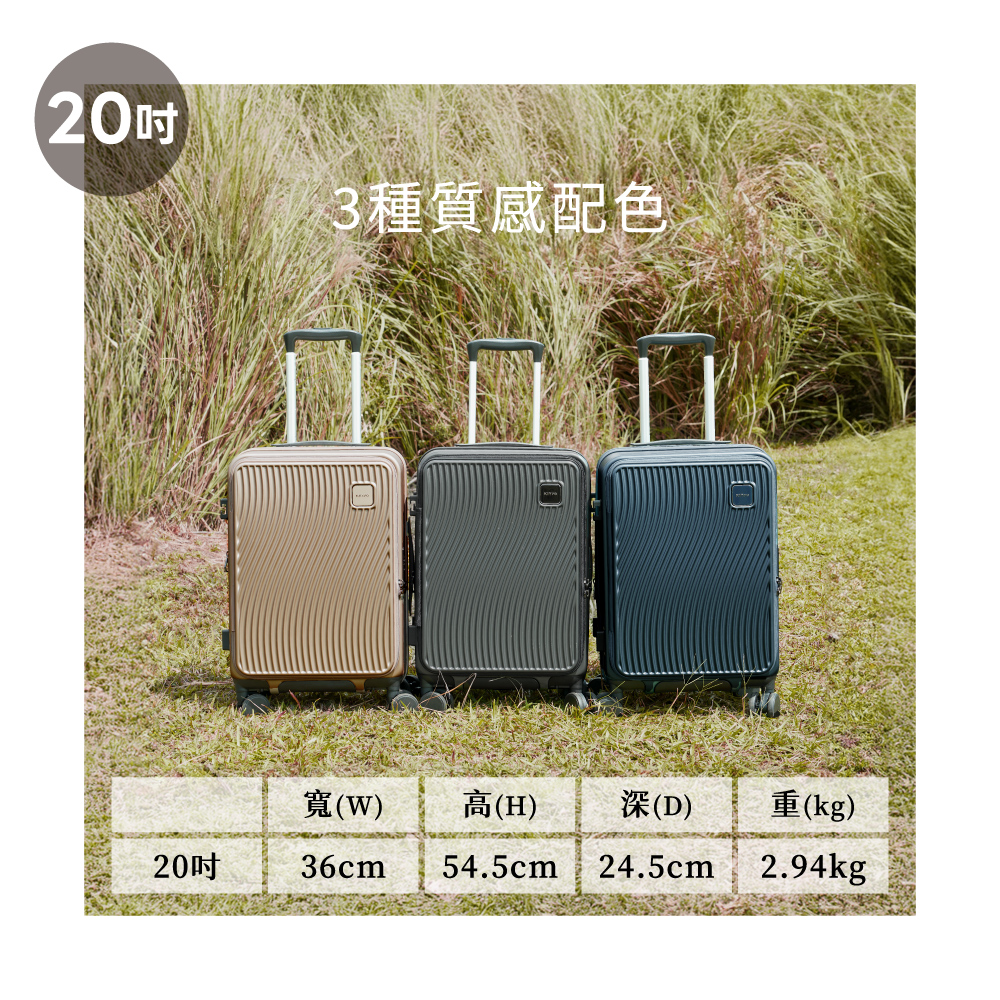 品名:行李箱 型號:KLG-2010 主要材質:ABS+PC塑膠 裝載重量:8kg 產品重量:2.94kg 產品尺寸:W360xH545xD245 mm 包裝尺寸:W370xH555xD255 mm 產地:中國(EM)