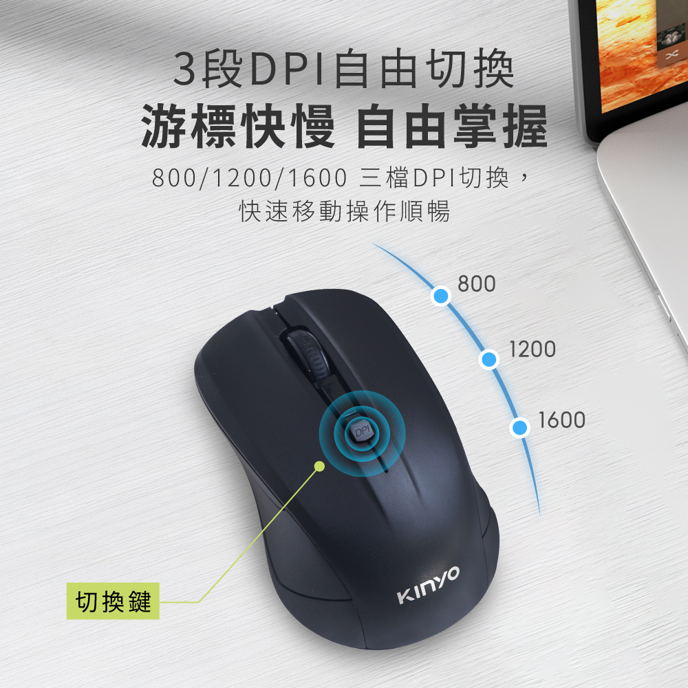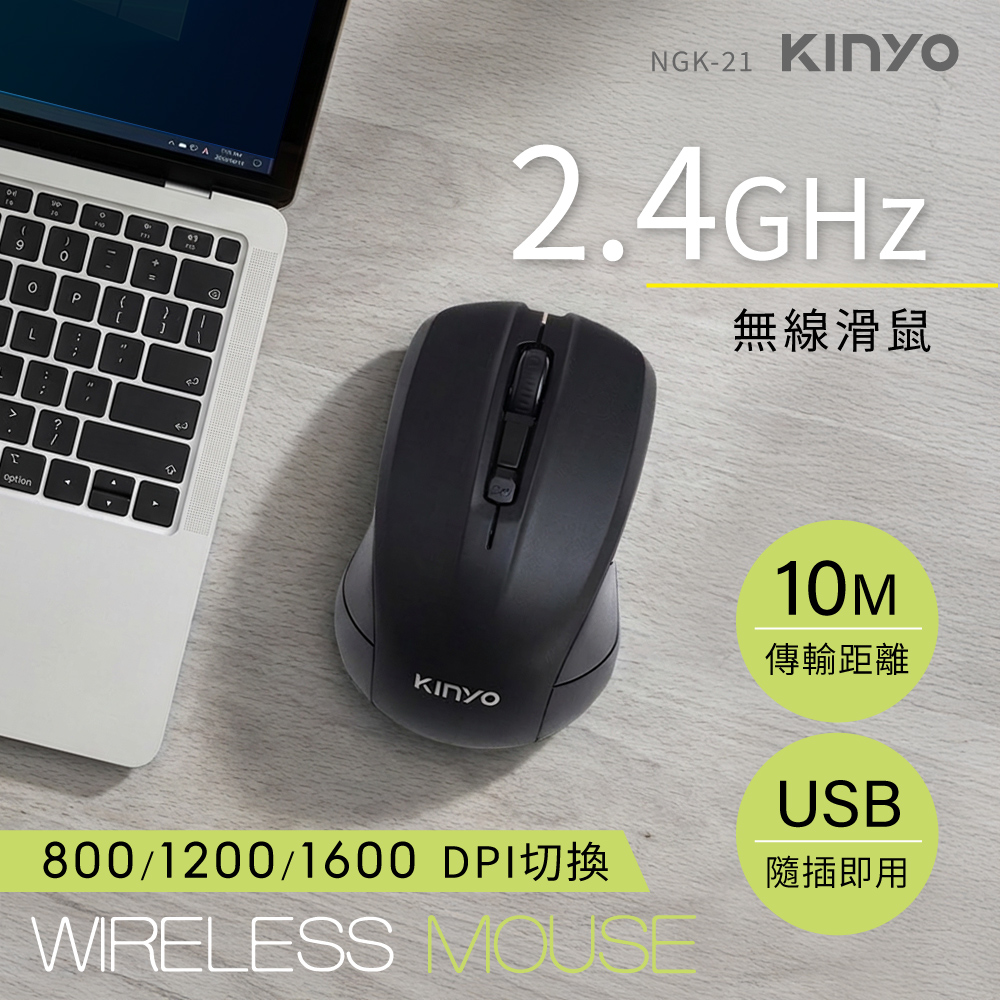 額定電壓:DC 1.5V 額定頻率:125Hz 額定輸入電流:20mA 額定頻率:125Hz 線長:1.5m±3% 接收器介面:USB 解析度:800/1200/1600 DPI 傳輸頻率:2.4GHz射頻 工作距離:10M ID number:自動對碼感應技術 按鍵數:四鍵(含滾輪) 材質:ABS塑膠 重量:59g 使用電源:3號(AA)電池×1(另購) 產品尺寸:W70×H44×D104 mm 系統需求:Windows /Mac OS/Linux