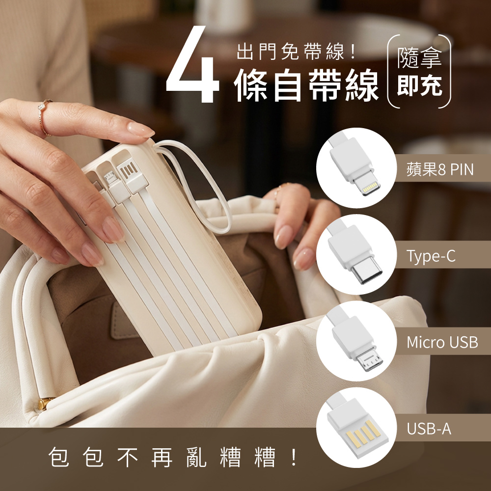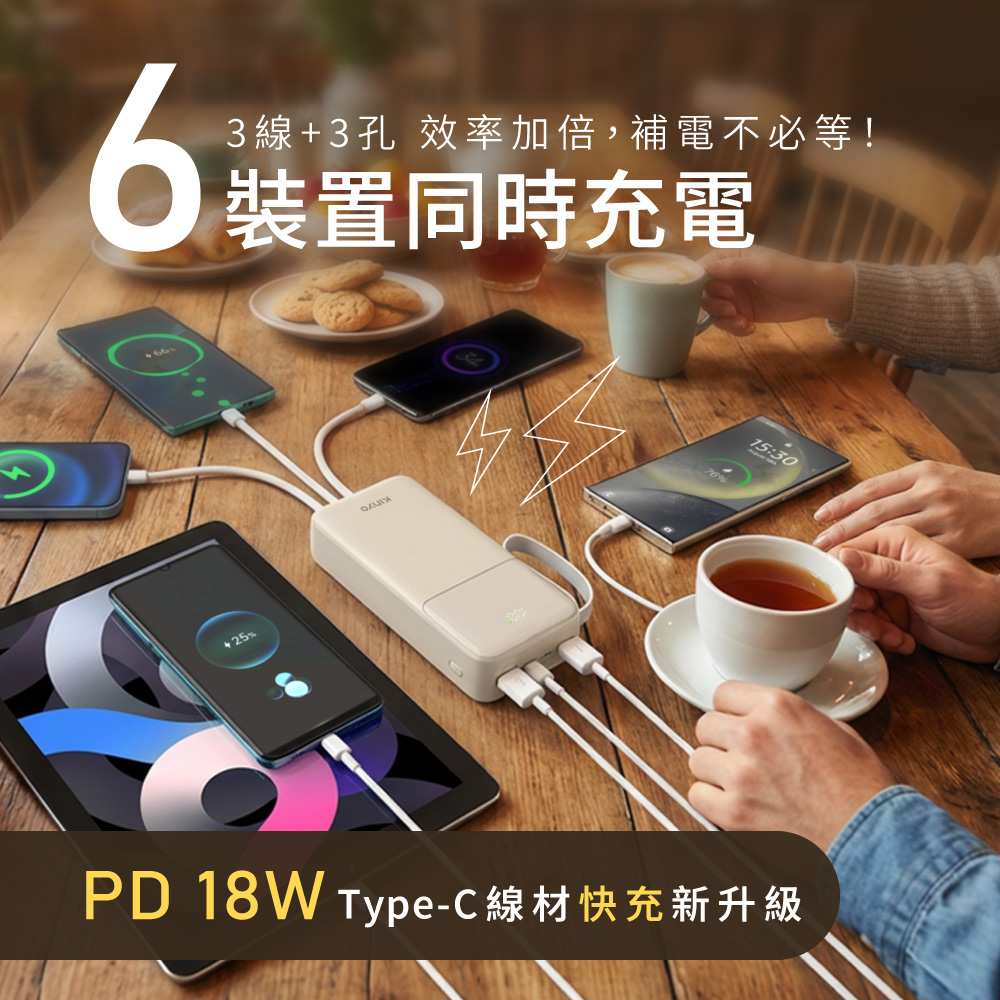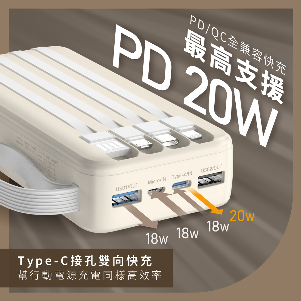 Type-C接孔+Type-C線材+USB-A1+蘋果線材+USB-A2+Micro USB線材:5V⎓3A