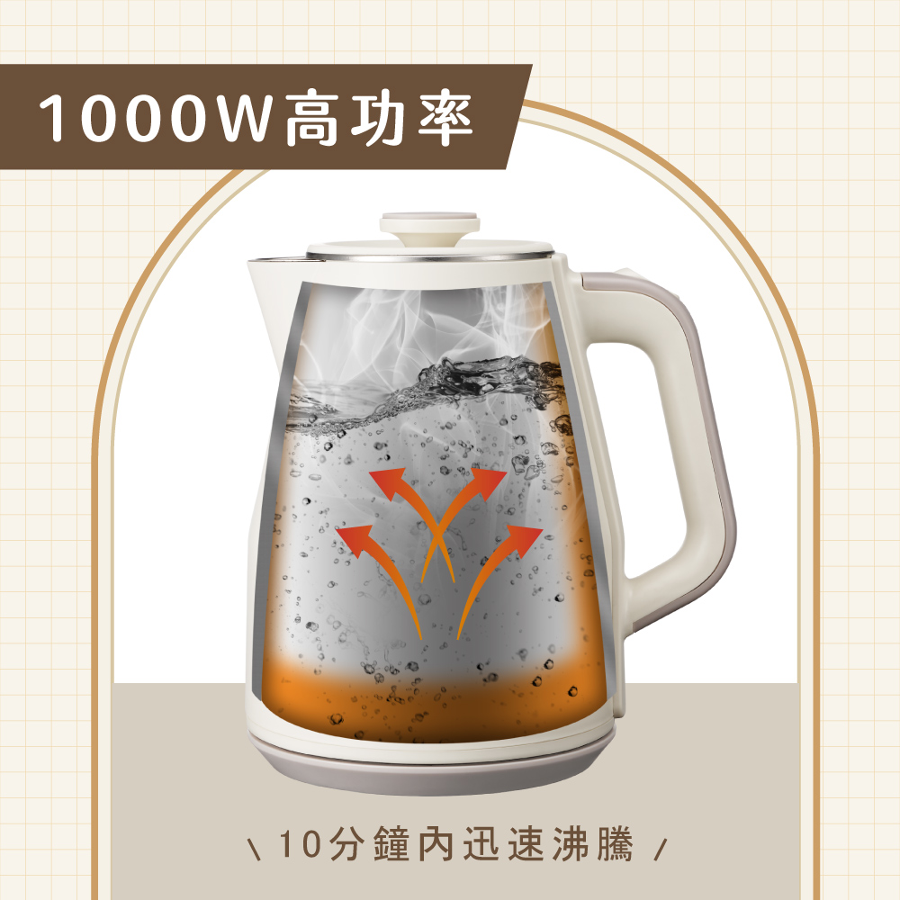 額定電壓/頻率:AC 110V/ 60Hz 總額消耗電功率:1000W 材質:食品級 SUS 304不鏽鋼、塑膠 容量:2.2L(Max水位線1.8L) 產品重量:715g±10% 產品尺寸:W220XH230XD160 mm±10% 包裝尺寸:W210XD180XH237mm