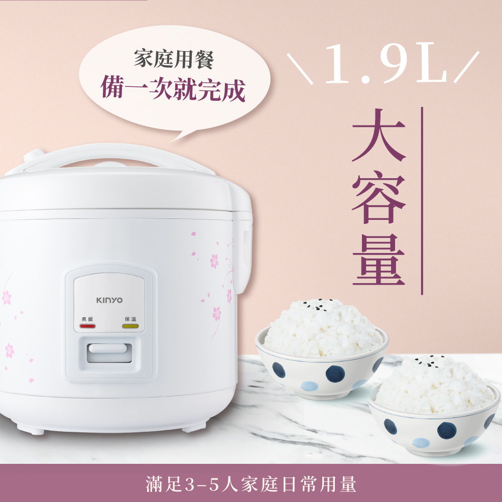 額定電壓/頻率:110V / 60Hz 總額定消耗電功率:400W 熱 效 率 值:77.5% 材 質:PP、鋁合金、馬口鐵 額 定 容 量:(內鍋容量)1.9L、(米容量)1L 產 品 尺 寸:W205×D225×H235mm 包 裝 尺 寸:W243×D243×H250mm 產 品 重 量:1550g±10% 配 件:飯匙、量杯、蒸盤、電源線