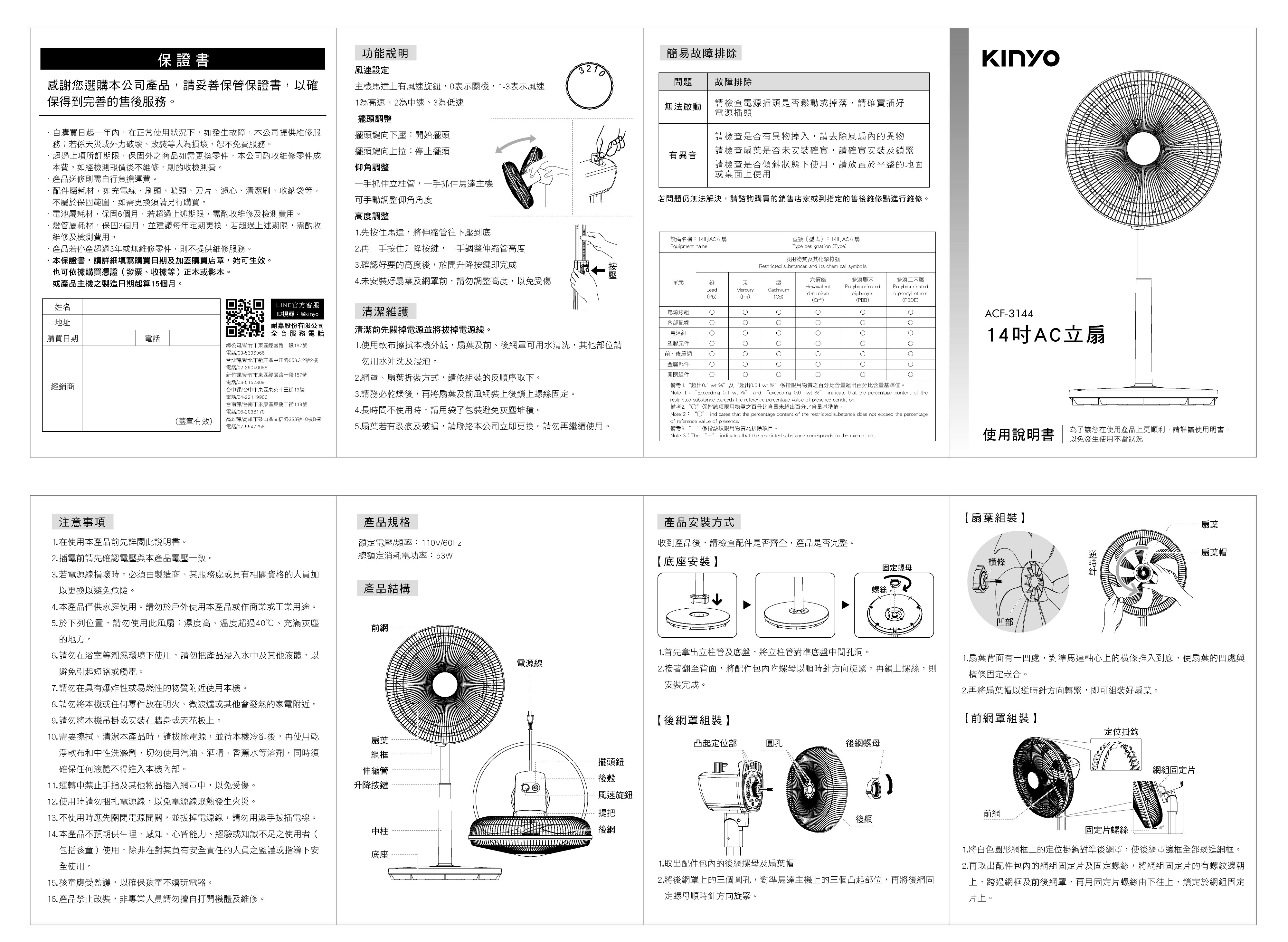 額定電壓:110V 額定頻率:60Hz 總額定消耗電功率:53W 材質:鐵、PP塑膠 電源線長:180±10CM 產品尺寸: W420xH715xD400 mm 產品重量: 3600 g 包裝尺寸: W600xH424xD190 mm