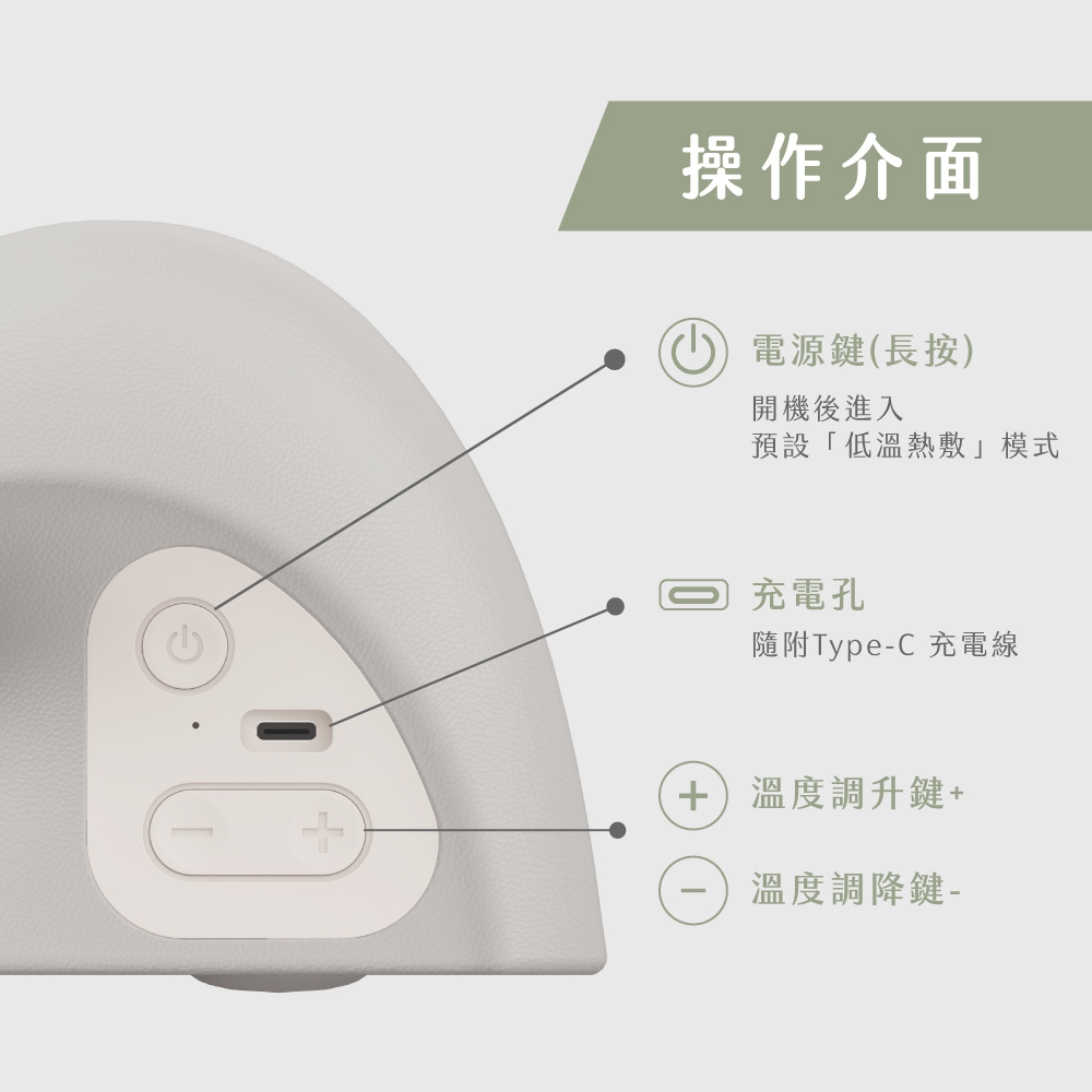 額定電壓:5V ⎓ 額定電流:1A 使用電源:700mAh 滿電續航時間:約60分鐘 (實際會依環境溫度與使用模式等因素,影響充電及使用時間。) 安全定時關機時間:15分鐘 ※若感應未接觸到肌膚,將於2分鐘後自動關機。 材質:PU發泡、不鏽鋼電鍍片、ABS塑膠 產品重量:430g 產品尺寸:W210*H108*D200mm 包裝尺寸:W215*H115*D205mm 配件:Type-C充電線×1 產地:中國(ZHZL)