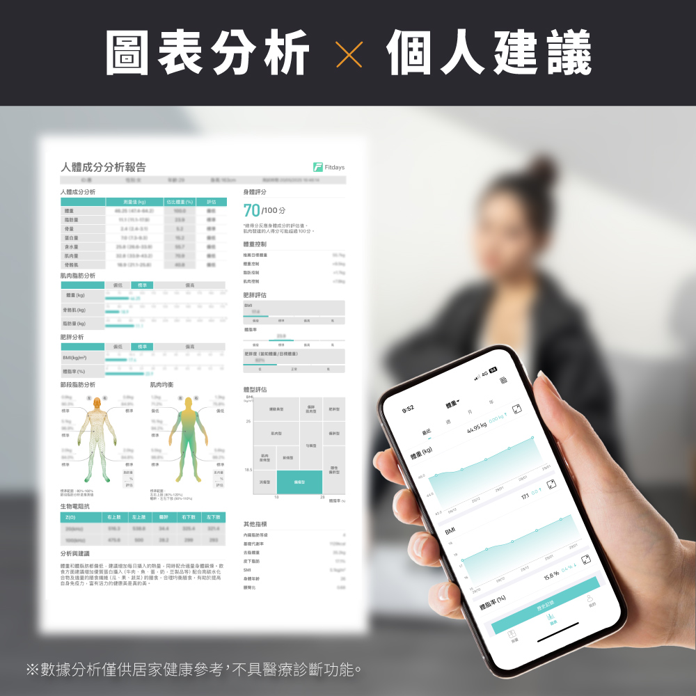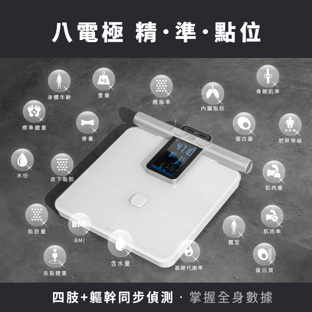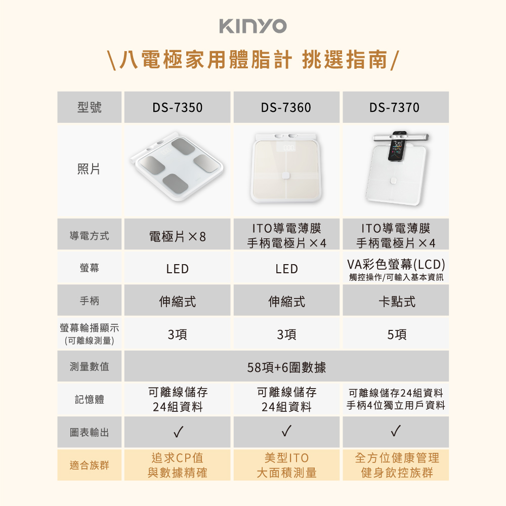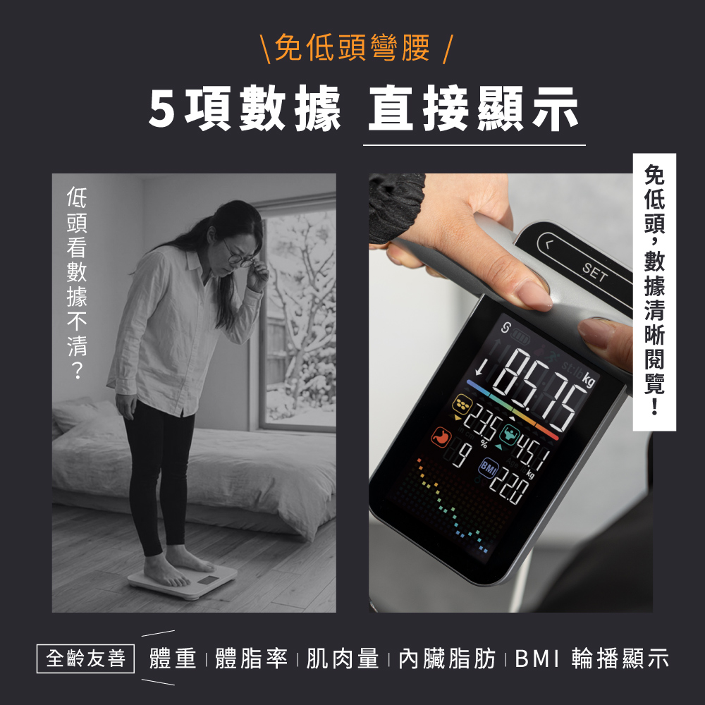 品名:體重計 型號:DS-7370 額定電壓:DC 6V 使用電源:4號(AAA)電池×4(另購) VA彩色螢幕尺寸:107x59mm 最大負載重量:180kg / 395lb 最小重量感度:5kg 最小單位:50g 測量單位:kg / lb / st:lb 誤差值 50kg±0.3kg 100kg±0.4kg 180kg±0.5kg 材質:鋼化玻璃 / HIPS塑膠 產品重量:2.4kg 產品尺寸:W358xD310xH41mm 包裝尺寸:W380XD429XH80m 商品原產地:中國