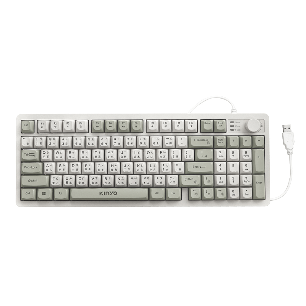 額定電壓:DC 5V 額定頻率:6MHz 額定輸入電流:30mA 按鍵:103鍵 線長:1.5m±3% 材質:塑料 介面:USB 產品重量:443g 產品尺寸:W445xH22xD145mm 包裝尺寸:W460xH30xD160mm 系統需求:Win 10/8.1/8/7/VISTA/XP、Mac OS x 10.5 或更新版本 Linux kernel 2.6或更新版本