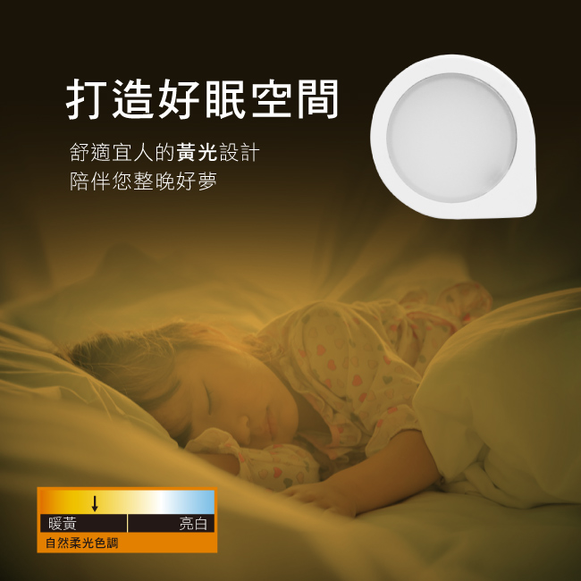 .手動開關控制,黃光設計,光線柔和不刺眼。